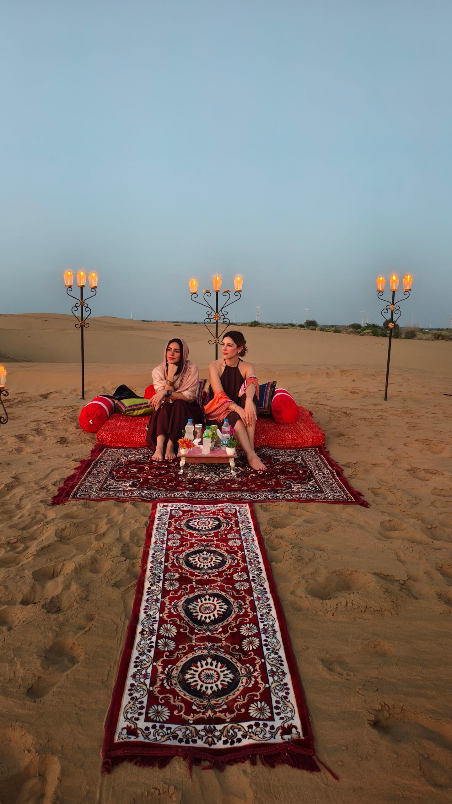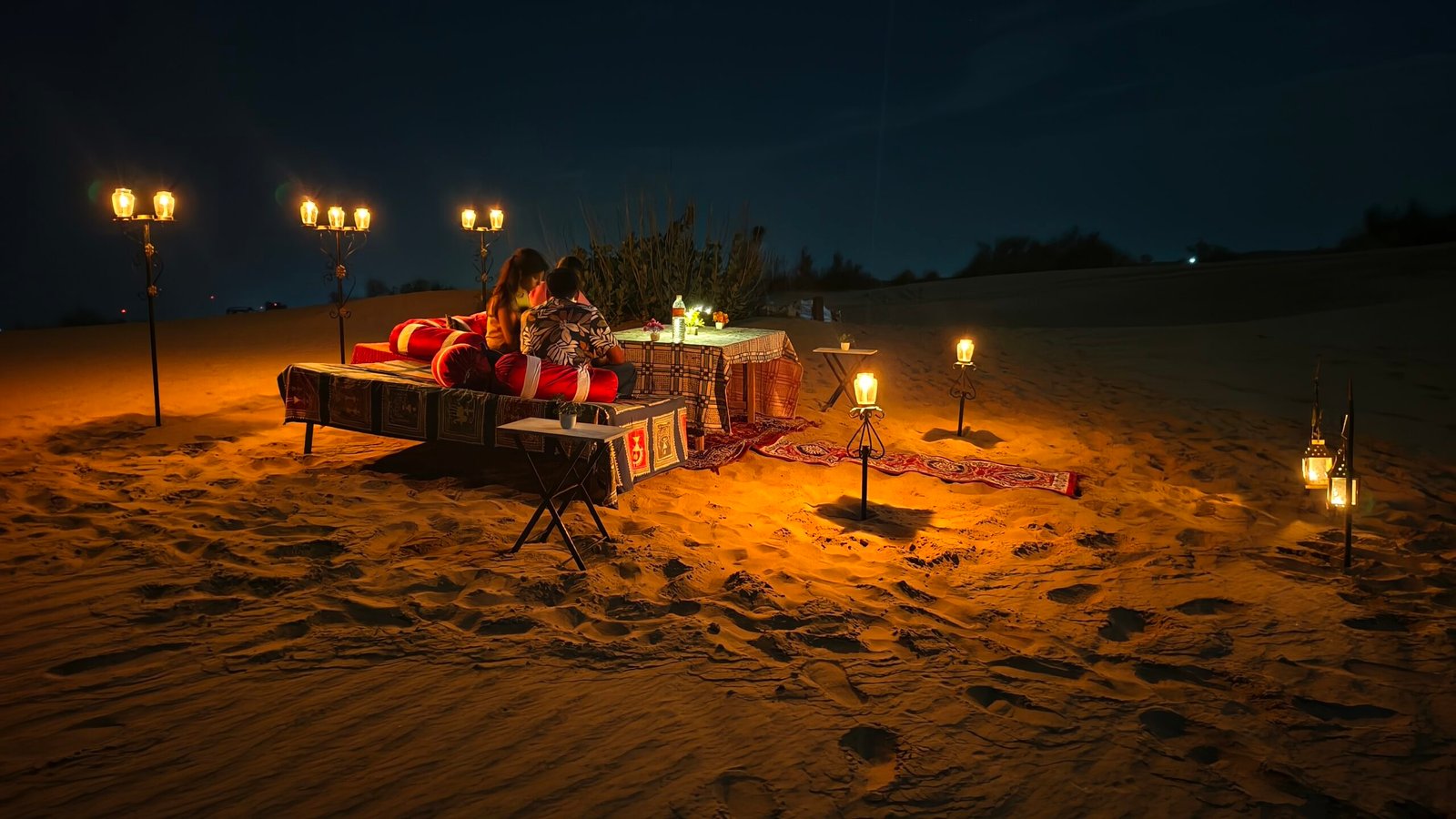 Experience a magical evening in the heart of Sam Sand Dunes with a romantic candlelight dinner under the open sky.